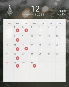 誠に勝手ながら、2025年12月31日(水)~2026年1月2日(金)まで年末年始休業とさせていただきます。
